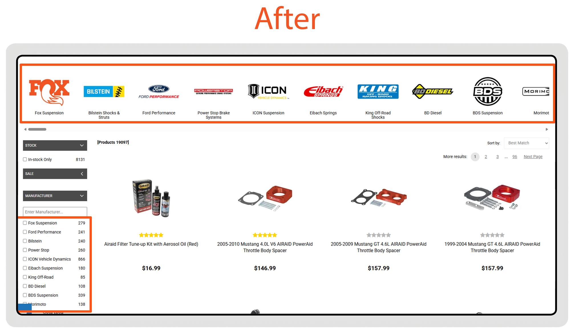 Previously, our search engine prioritized products based on their fitment data. Sometimes it led to some exact-match products being buried in search results because they lacked fitment data. As a result, users who started their shopping journey by typing a brand name or part number sometimes couldn’t find the right items. It is no longer the case.