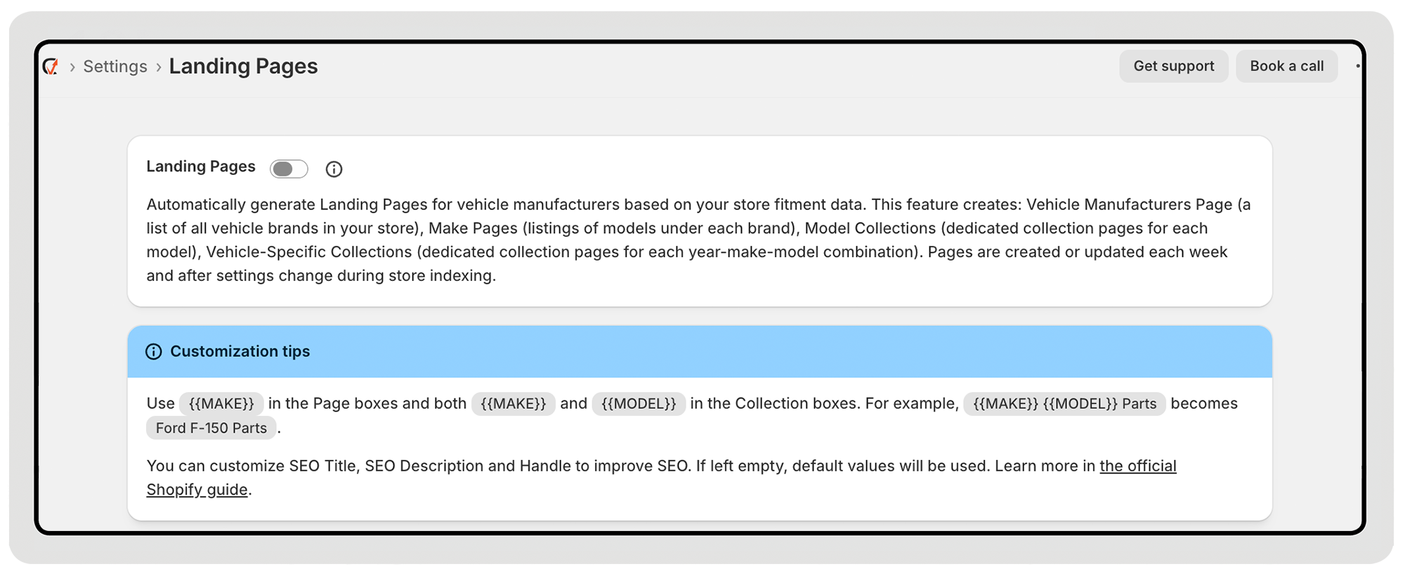 Last year, we updated the Vehicle Landing Pages feature to make it easier for Shopify merchants to create and manage vehicle-specific pages directly inside the Convermax app. Previously, merchants had to create them manually and configure metafields before our search could display products on them. Now, landing pages can be generated directly from our app.